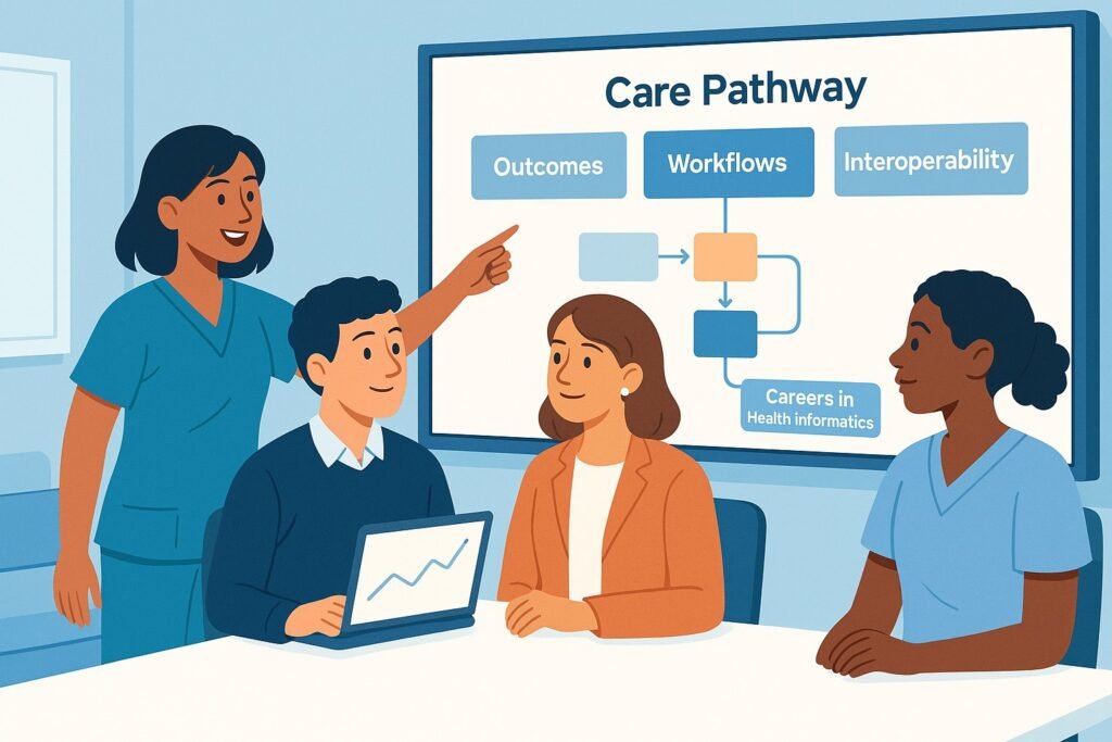 The most promising careers in health informatics include clinical informatics specialist, health data analyst, data scientist, health data engineer, interoperability and FHIR specialist, EHR analyst, population health and quality analyst, cybersecurity analyst, product manager for digital health, and genomics data analyst. These roles blend clinical context with analytics and modern software to improve outcomes, reduce burden, and drive strategic value. Salary medians commonly span the upper five figures to well into six figures, based on U.S. Bureau of Labor Statistics data and sector surveys [1][2][3][4][5][6][7].