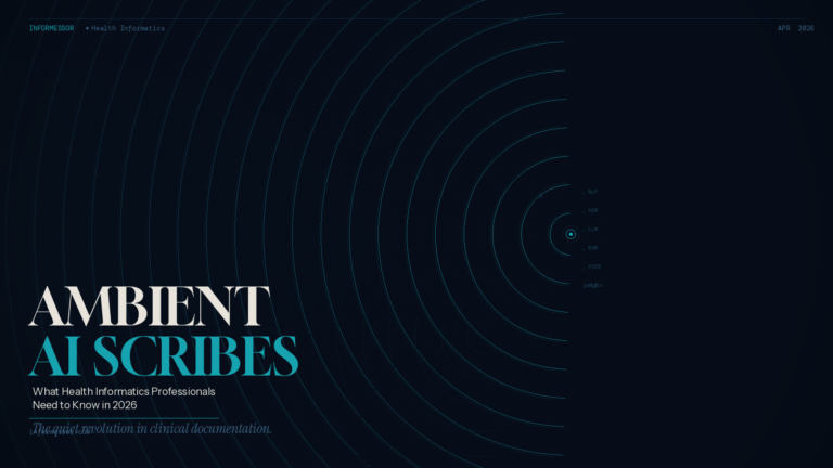 There’s a quiet revolution happening inside exam rooms across the country, and most people outside healthcare have no idea it’s going on. Ambient AI scribes are now being deployed at scale across major health systems. These tools listen to clinician-patient conversations in real time and automatically generate clinical notes. And they are creating both a major opportunity and a serious responsibility for health informatics professionals.